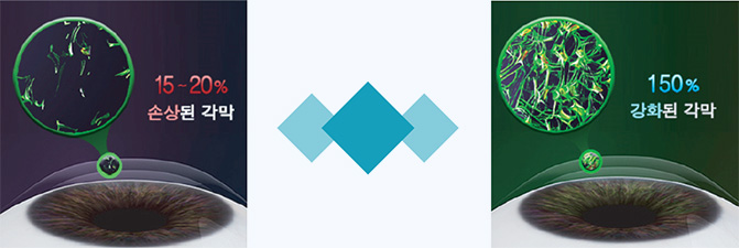 수술 후 보통 각막구조가 14~33%정도 약해지게 되는데 약해진 각막을 150%이상 견고히 해주는 시술로 각막이 약해져 생길 수 있는 부작용과 근시퇴행을 억제하여 오랫동안 건강한 시력을 유지시켜줍니다.